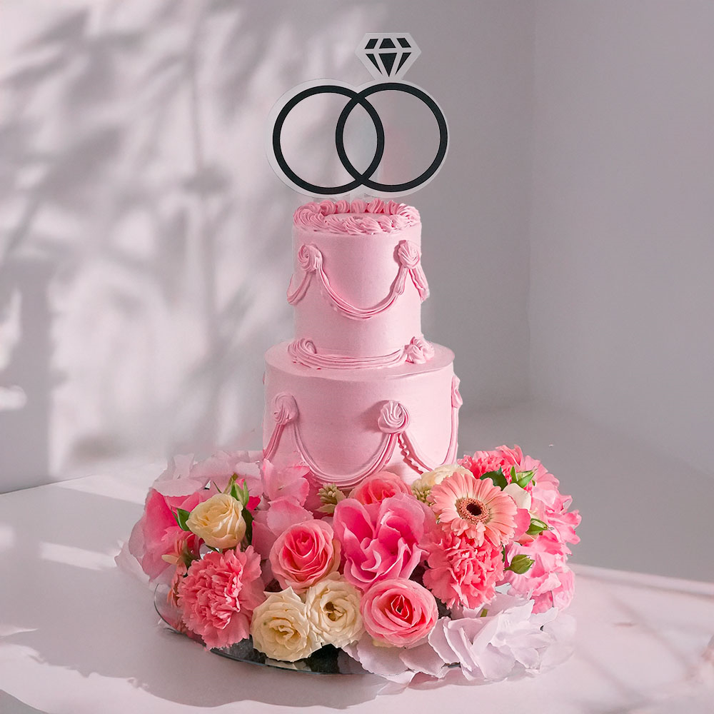 كيكة الشوكولاتة الرطبة مع صقيع الزبدة، مزينة بالورود الاصطناعية، يمكنك طلب نكهات الريد فيلفيت أو الفانيليا.
