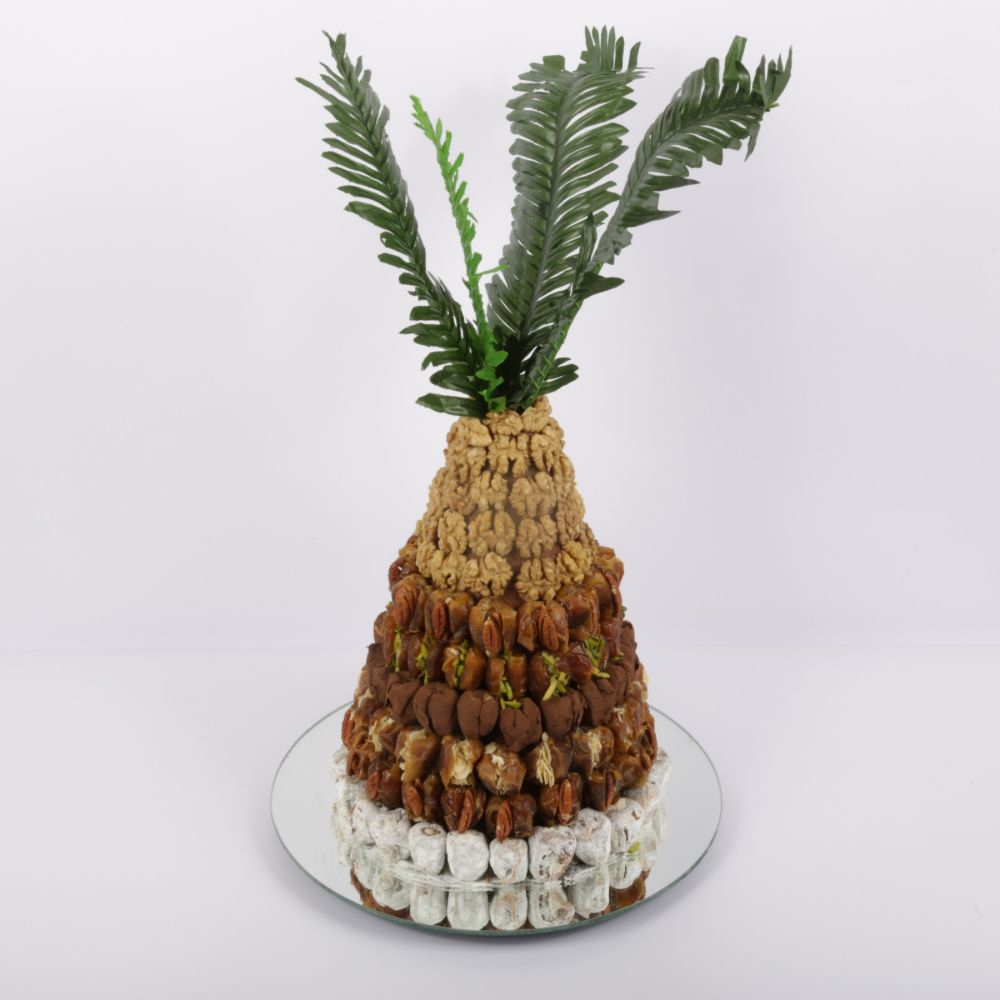 تاور دائري بحشوات مختلفه من التمور الفاخرة.