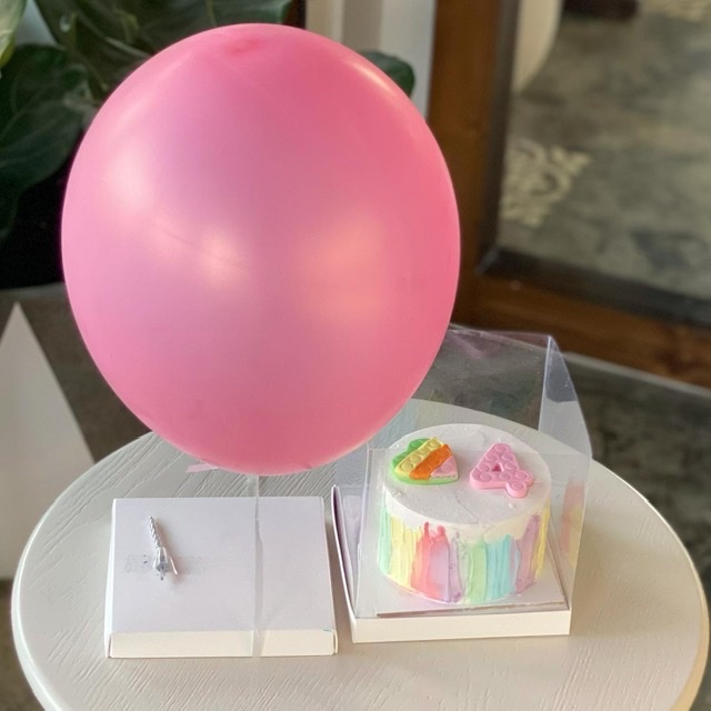 كيكة فانيلا إسفنجية بحجم صغير محشوة بصلصة التوت الأحمر. تأتي مع بالونة وشمعة صغيرة حسب اللون المتوفر.