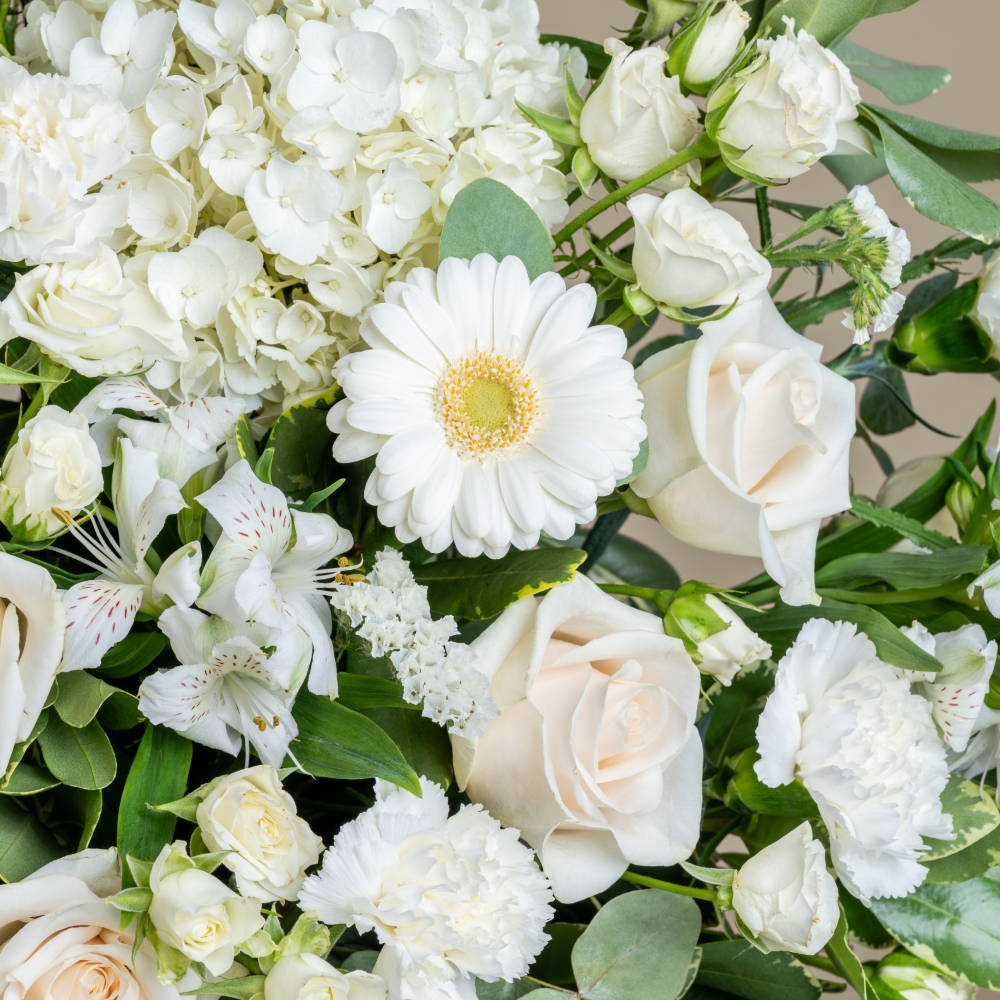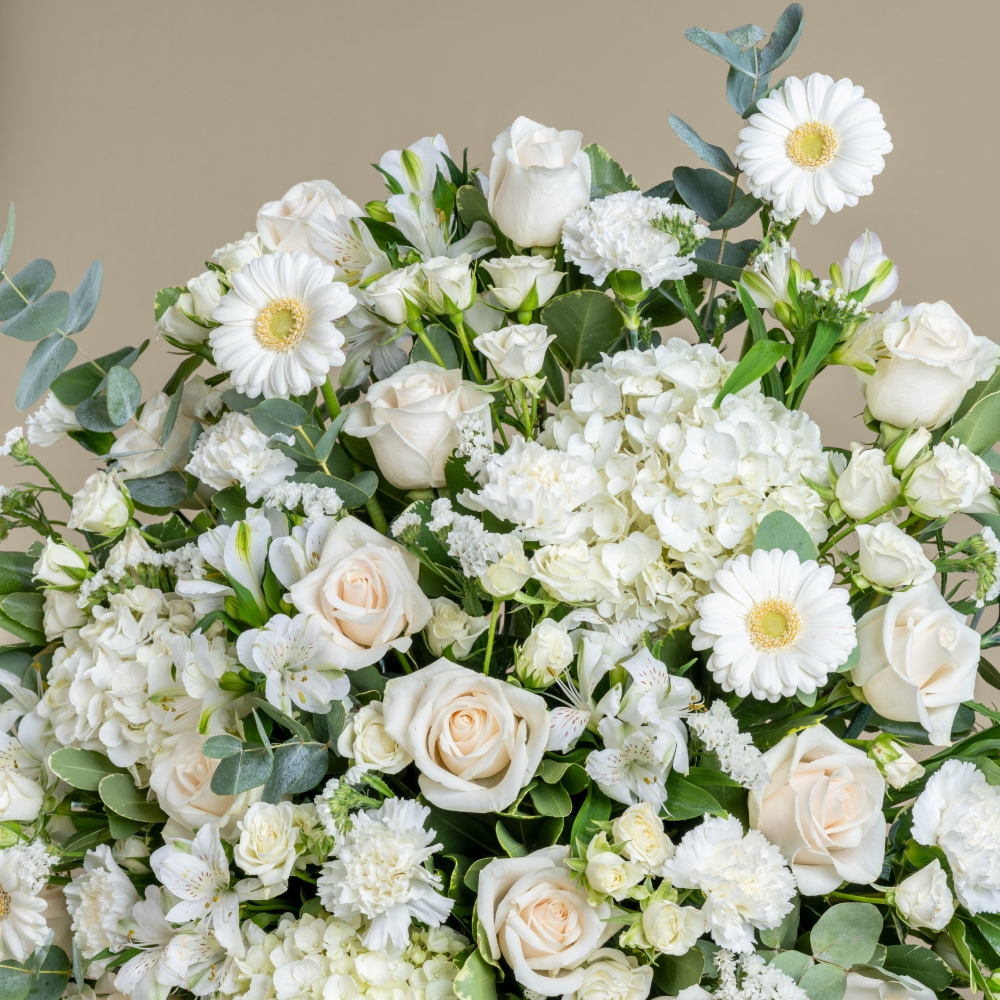 فازة كبيرة مليئة بأزهار الكوبية الأنيقة، الجوري، الجربيرا، والستروميريا. مثالية لإضاءة أي مساحة وإضفاء لمسة فاخرة على أي مناسبة.