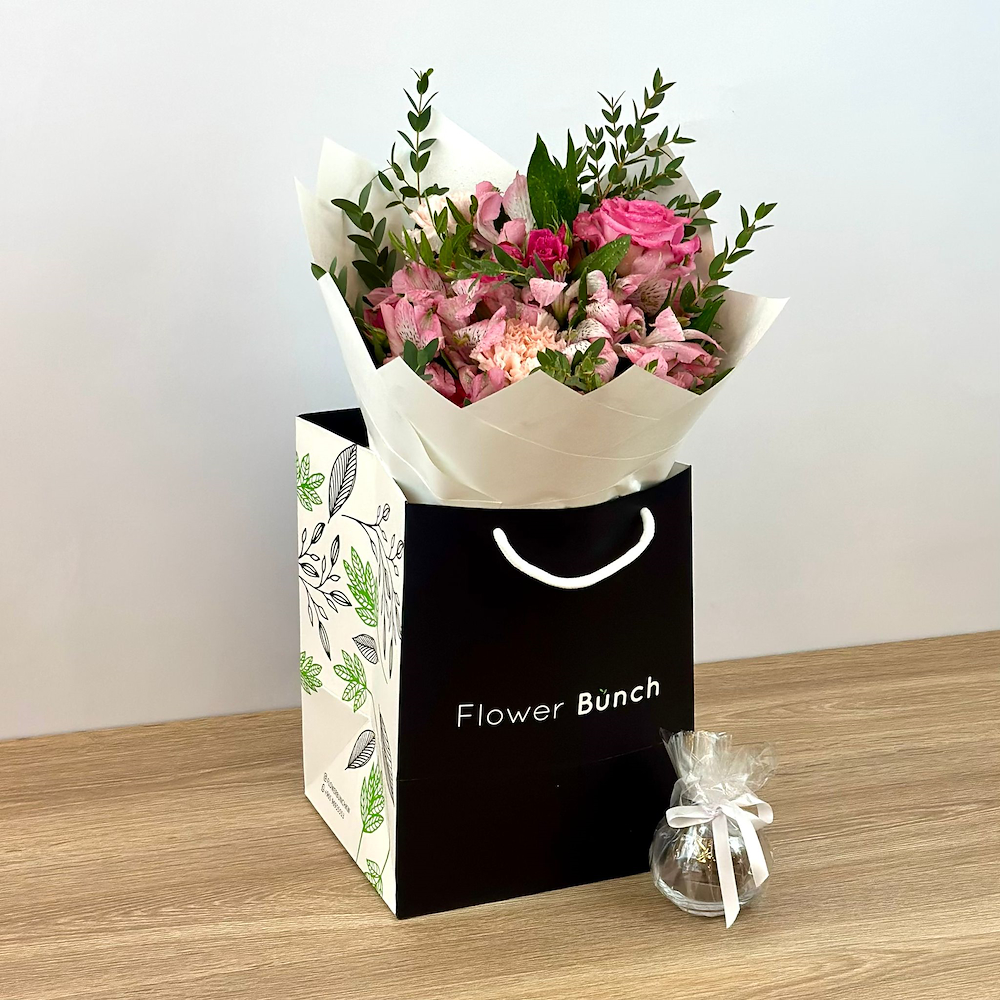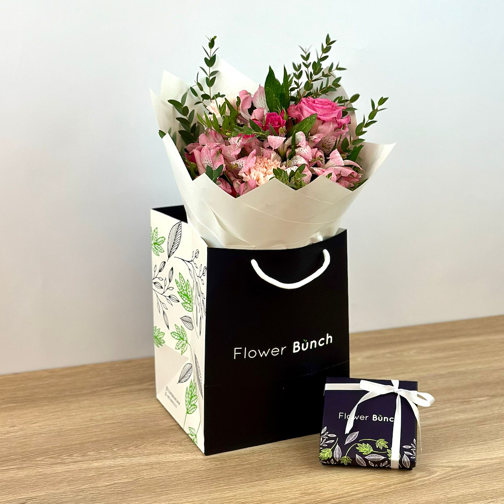 باقة تحتوي على الجوري مع الشوكولاتة.