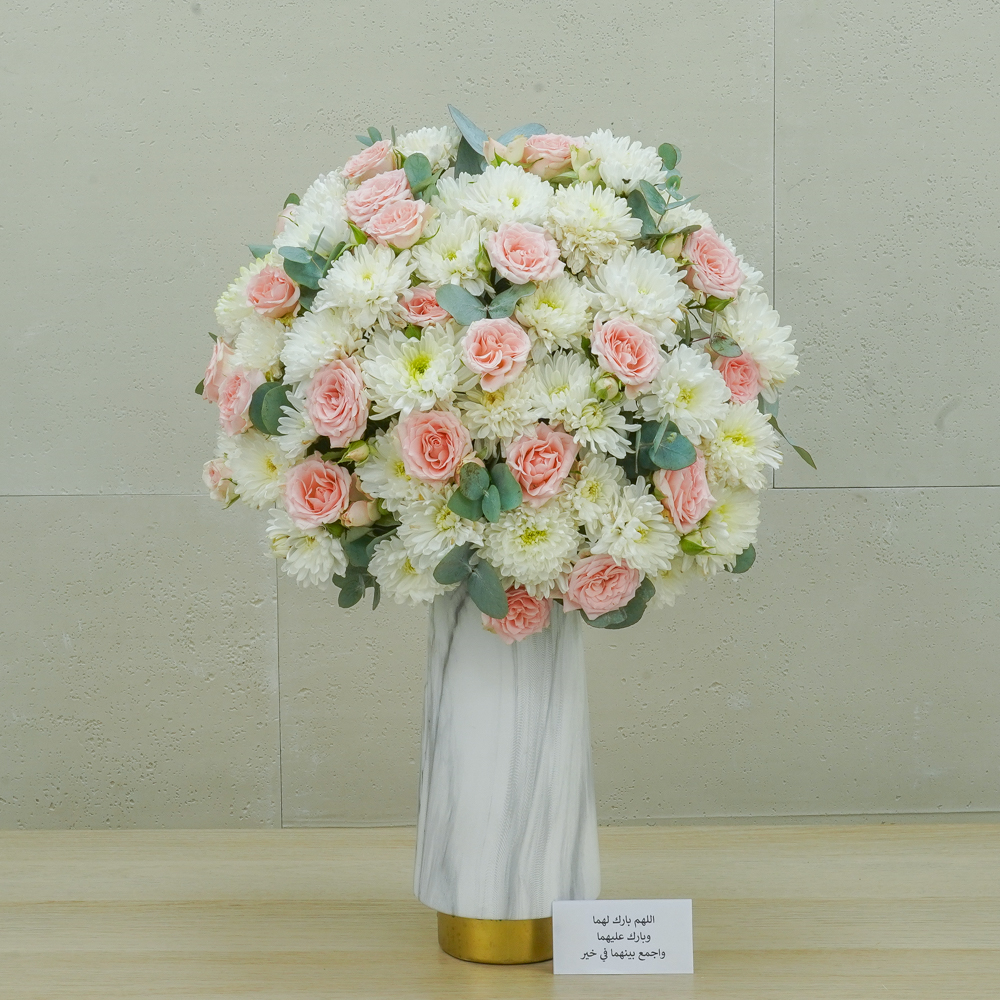هذه الباقة تحتوي على الكريزنتم والبيبي روز.