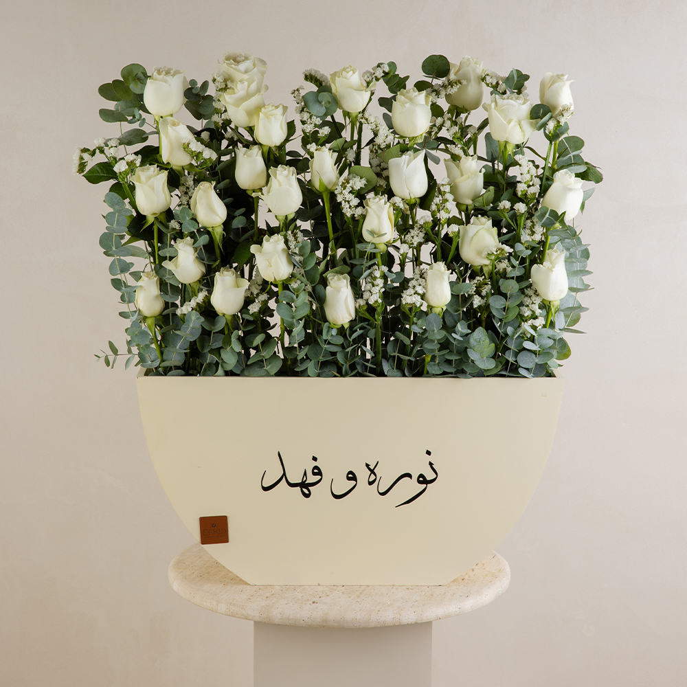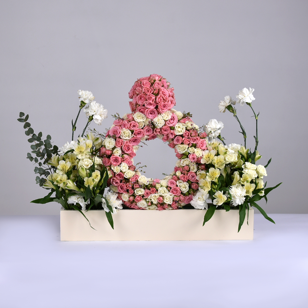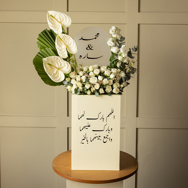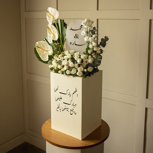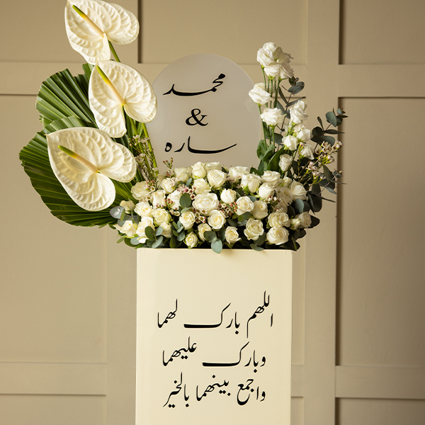 ستاند يحتوي على الانتوريوم و البيبى جوري وزهور الواكس.
