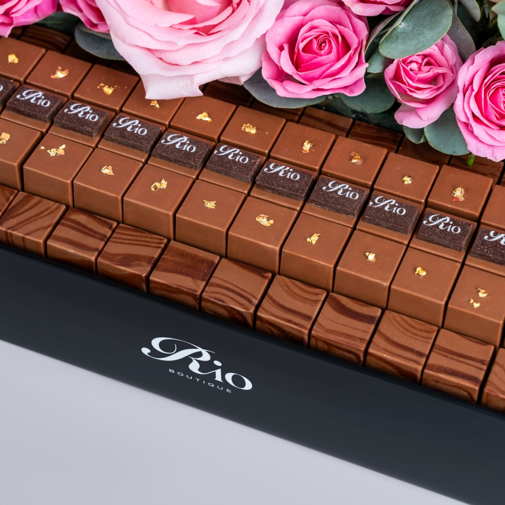 صينية راقية تضم الجوري والبيبي جوري مع شوكولاتة فرنسية. هدية مميزة للشفاء أو لأي إحتفال.