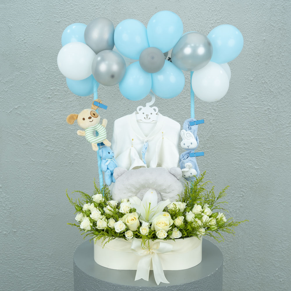 الصندوق الأبيض الموسمي يحتوي على 100 مل من معطر نورثن الفاخر، ومعطر رش بحجم 300 مل من الأكثر مبيعًا، وتولة من بخور شار الهندي الفاخر، مع بطاقة إهداء وبطاقة مناسبة وتنسيق ورد أنيق.