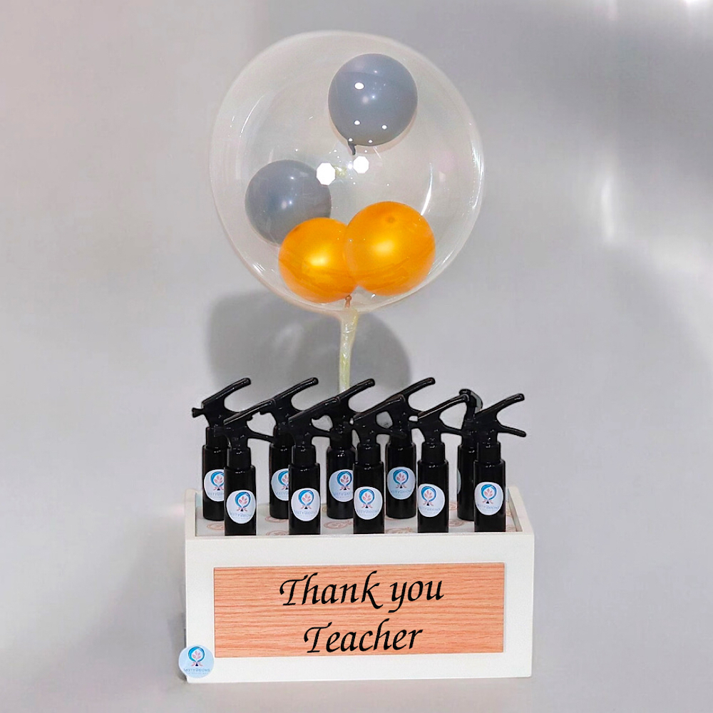 مجموعة من 10 توزيعات الرشوش بداخل صندوق خشبي مع بالونات والكتابة الخاصة.