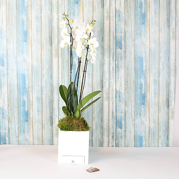 صندوق الأوركيد الخشبي أبيض