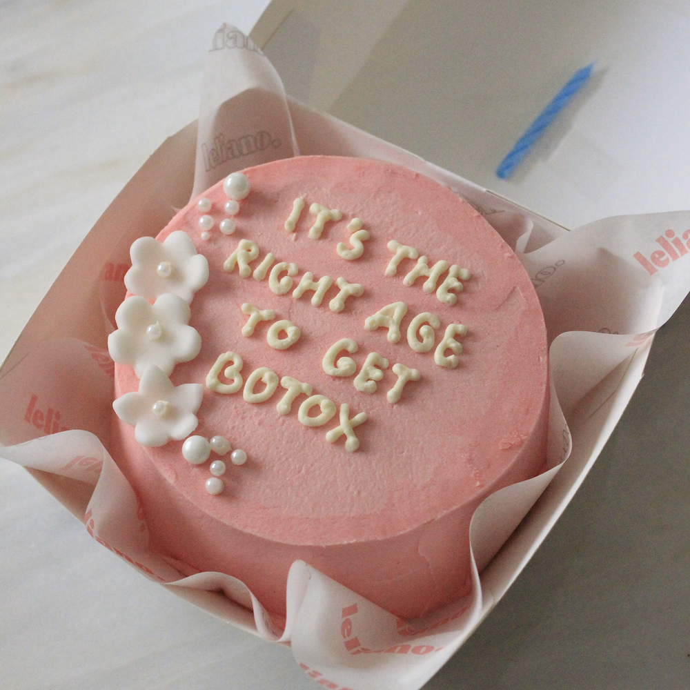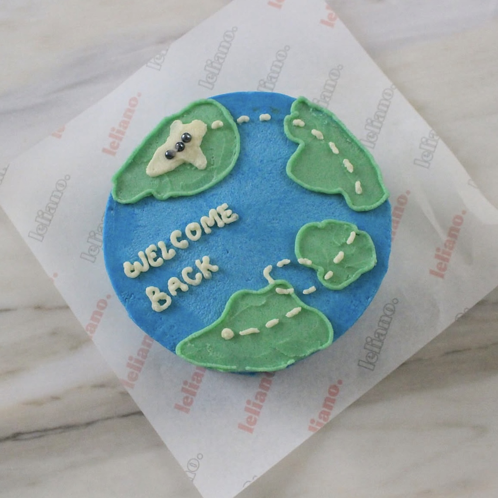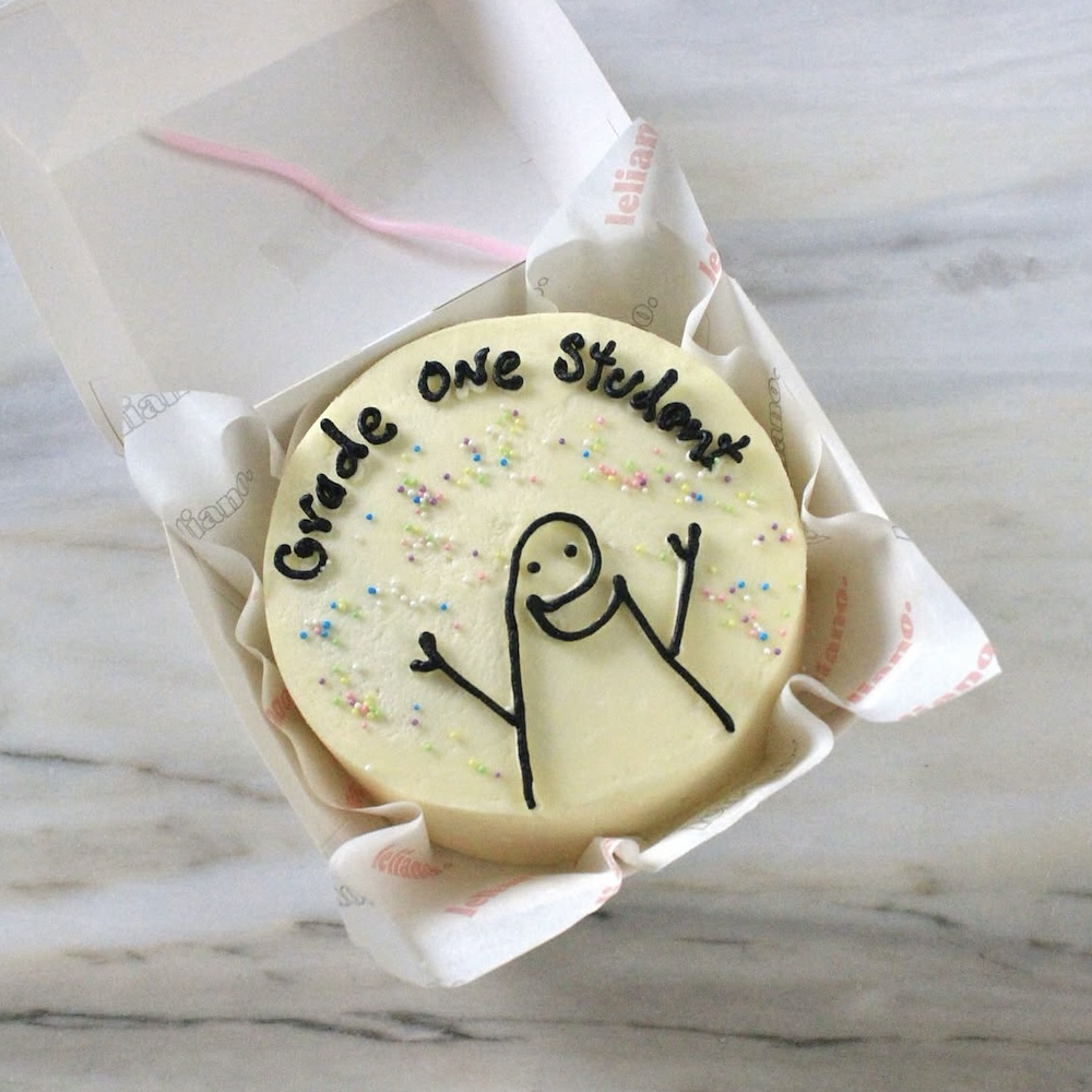 كيكة فانيلا بحجم 4.5 إنش محشوة بمربى الفراولة وكريمة الجبن، تكفي شخصين. يمكن تغيير لون الكيكة حسب الطلب. يمكنك اختيار عبارة مفضلة لديك، بشرط ألا تتجاوز 4 كلمات. يرجى كتابة العبارة المطلوبة في خانة الملاحظات.