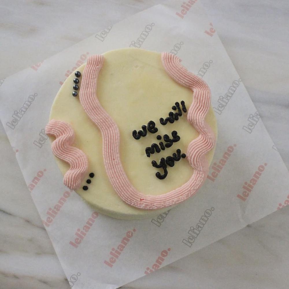 كيكة فانيلا بحجم 4.5 إنش محشوة بمربى الفراولة وكريمة الجبن، تكفي شخصين. يمكن تغيير لون الكيكة حسب الطلب. يمكنك اختيار عبارة مفضلة لديك، بشرط ألا تتجاوز 4 كلمات. يرجى كتابة العبارة المطلوبة في خانة الملاحظات.