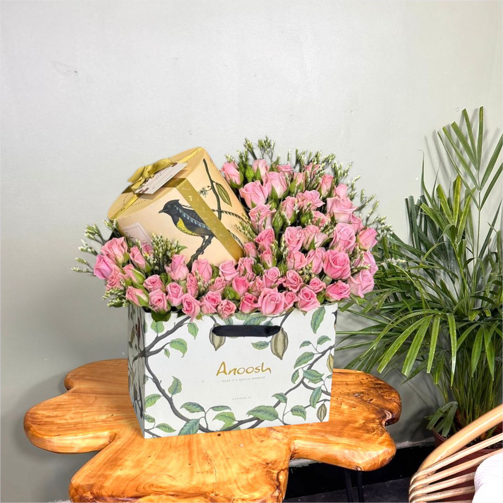 صندوق يحتوي على الجوري مع شوكولاتة انوش.