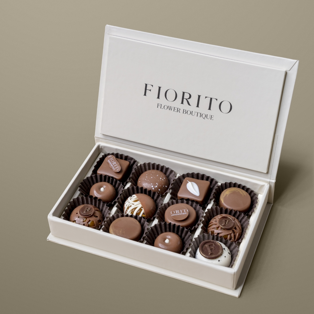 A tray featuring a flower box with roses, gerberas, baby roses, and carnations, paired with a box of premium French chocolate and a delicious cake. A luxurious gift perfect for celebrations and joyful moments.