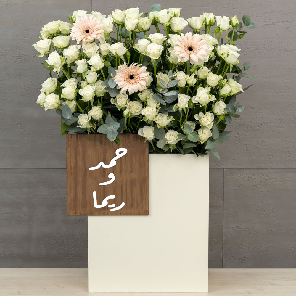This bouquet contains gerberas and baby roses.