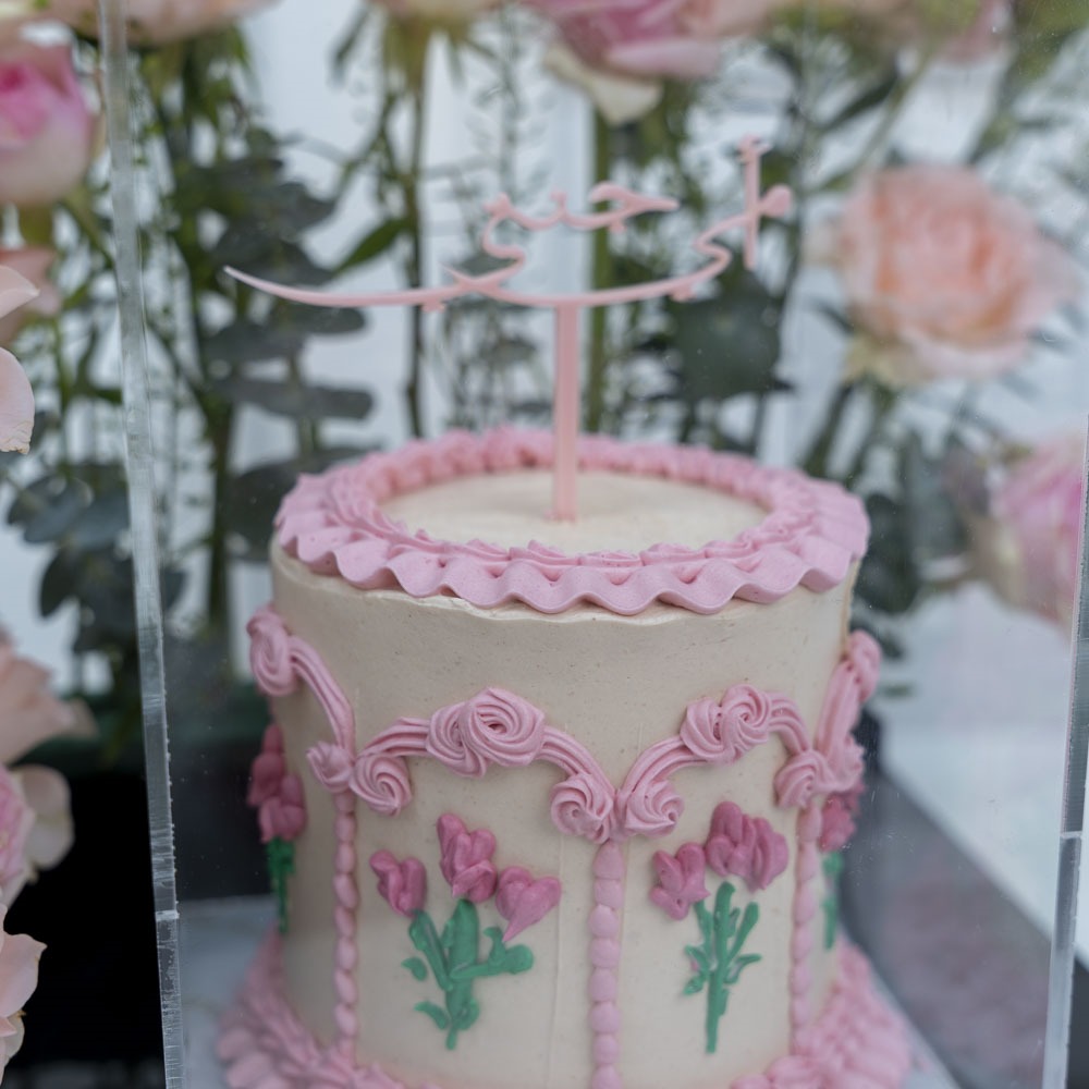 This bouquet contains baby roses, carnations, and gerberas with a chocolate cake.
