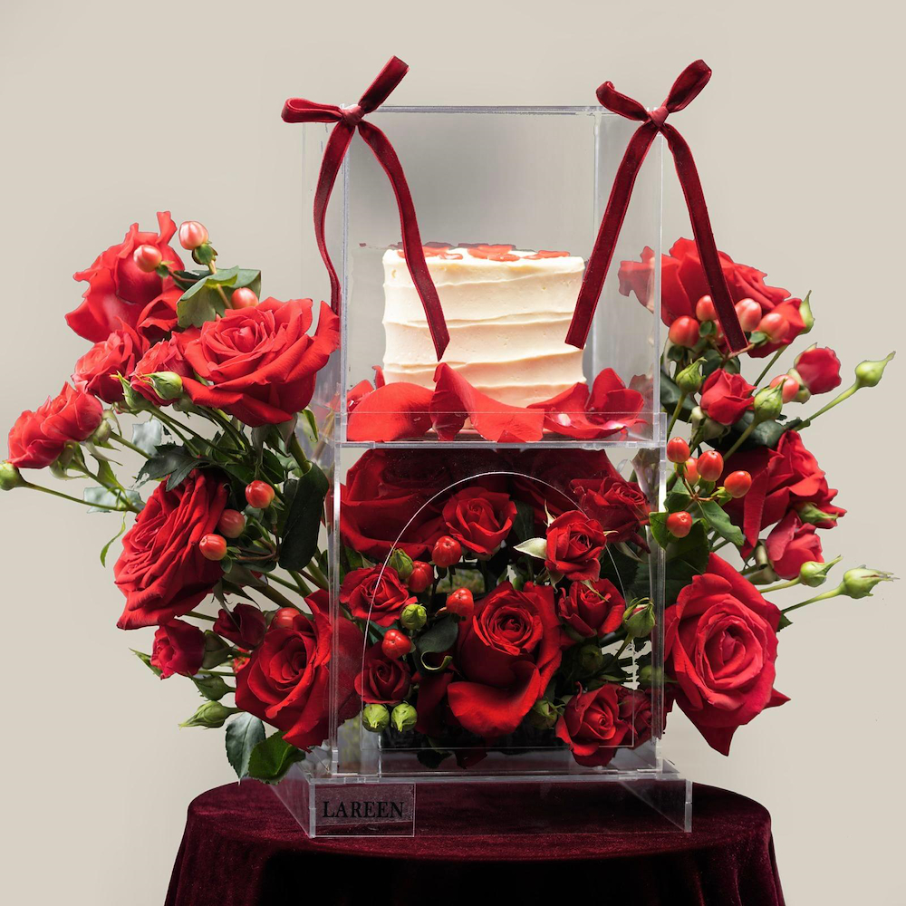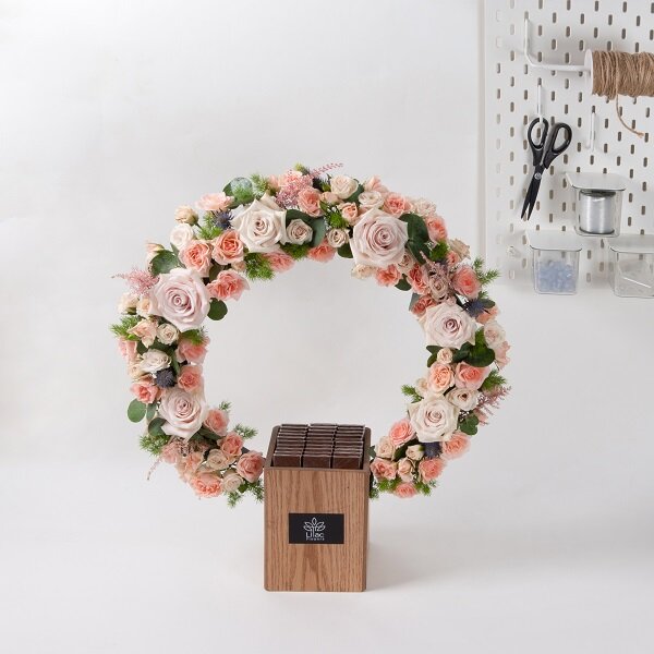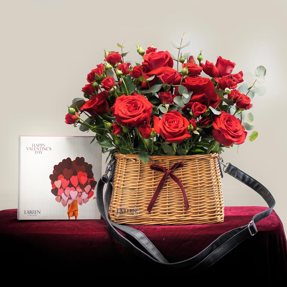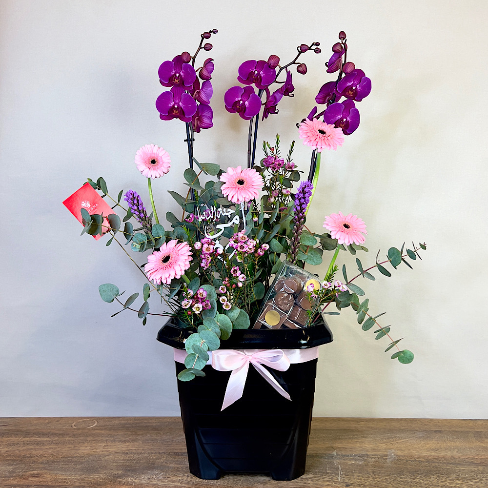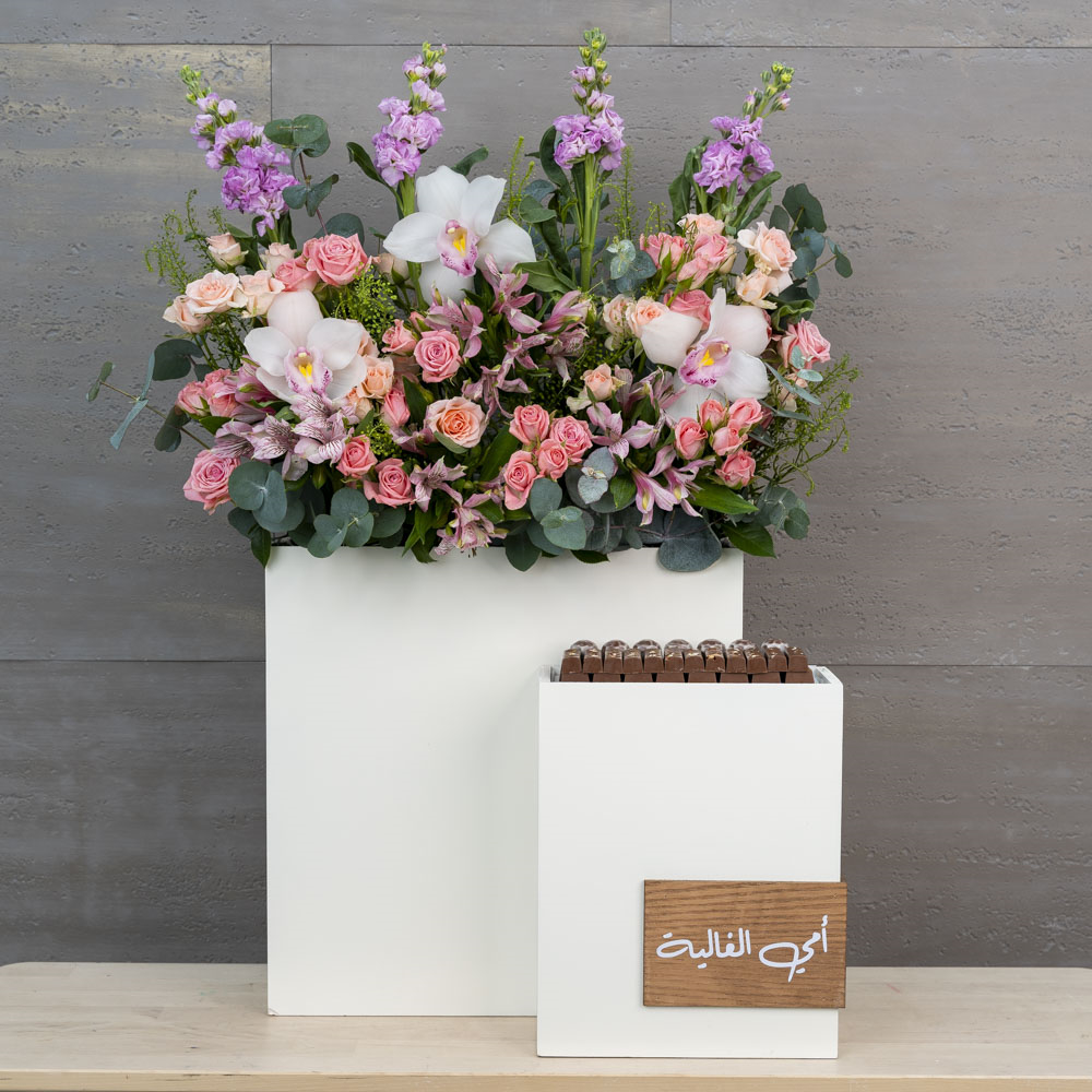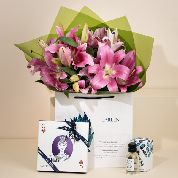 This bouquet contains a hand bouquet of Casablanca Lilies flowers and a box of chocolates and a perfume.