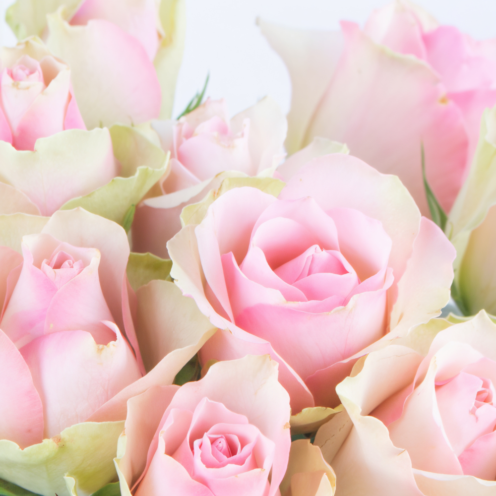A beautiful bouquet of 50 pink roses, arranged in a vase.
