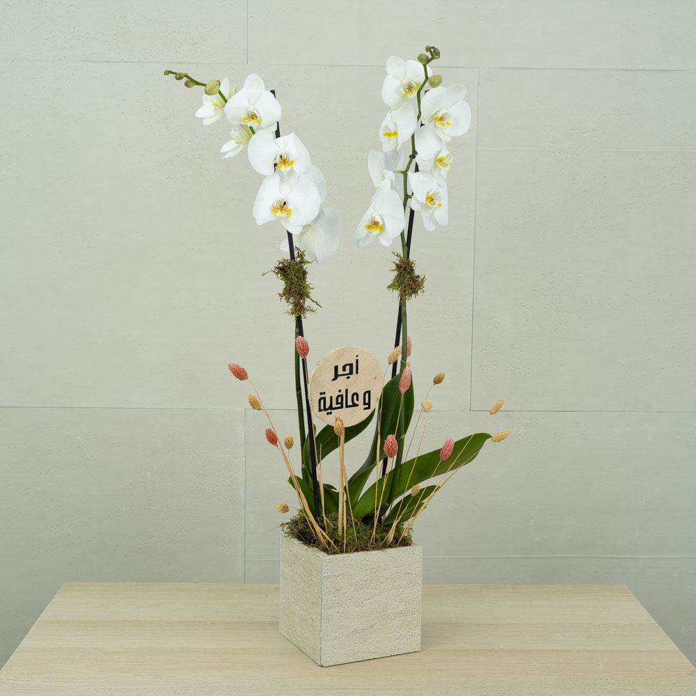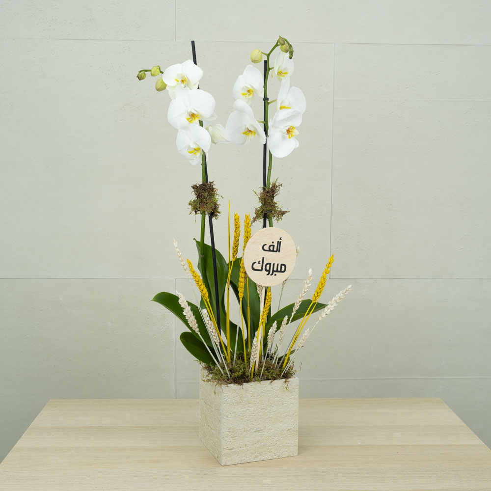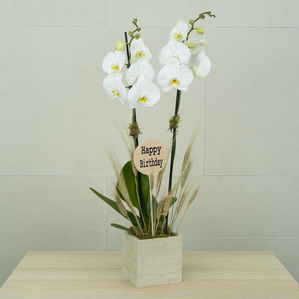 This bouquet contains baby rose and alstroemeria flowers with chocolates.