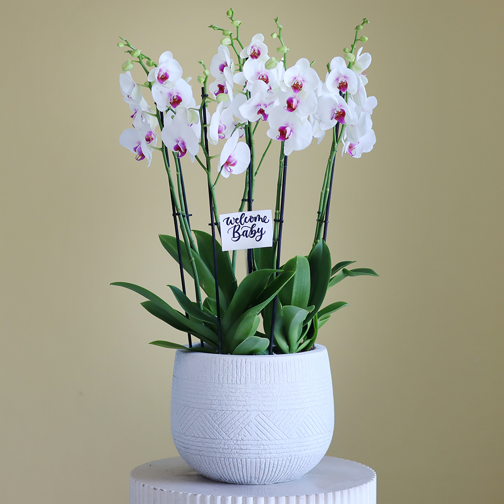 A bouquet containing tulip with chamelaucium arranged beautifully in a glass vase.