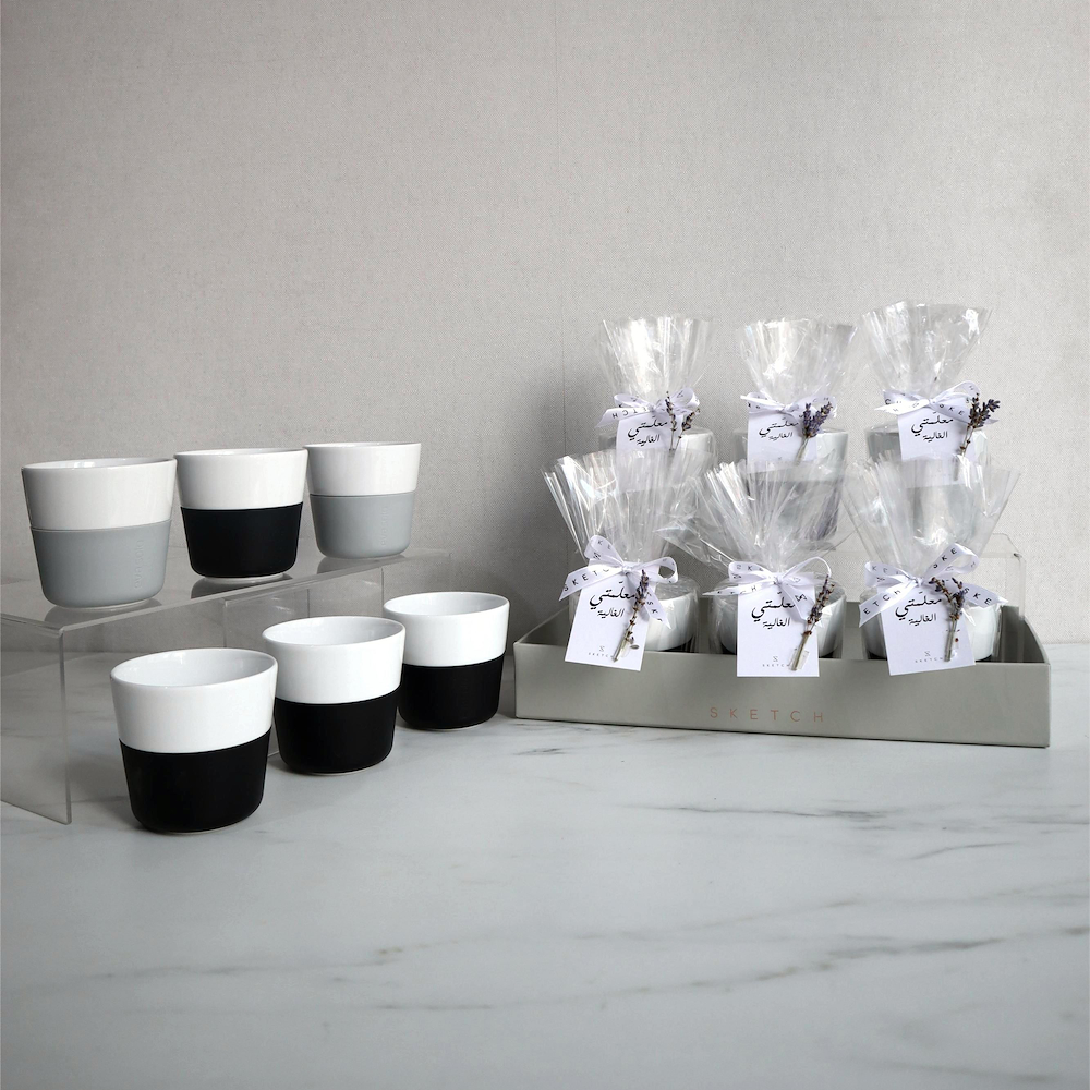 This porcelain cup set includes 6 pieces, 4 black and 2 grey, each with a silicone sheath for a secure grip. With a 230 ml capacity, they’re ideal for coffee, tea, or daily use, and come with a “Happy Teachers’ Day” card in English or Arabic.