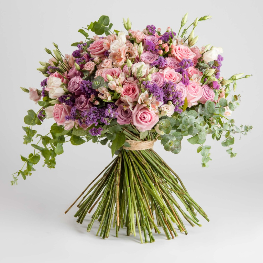 Thanks to ‘Hold Me Enchanted,’ we now know that nothing is more magical than an embrace within an embrace. As your loved one holds the ethereal charm of floral beauty close to their heart they will bask in a new spell, courtesy of ‘Hold Me Enchanted.’ Light pink and purple roses are paired with blushing spray roses and the passion-infused lisianthus, alstroemeria, and Hypericum. For a fragrant touch, eucalyptus leaves encompass them all in aromatic allure.