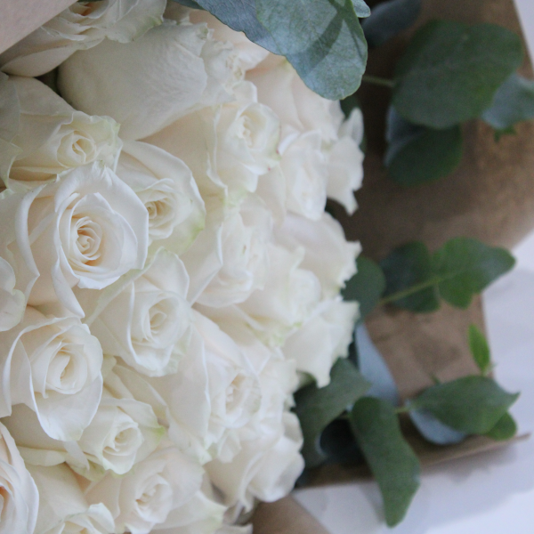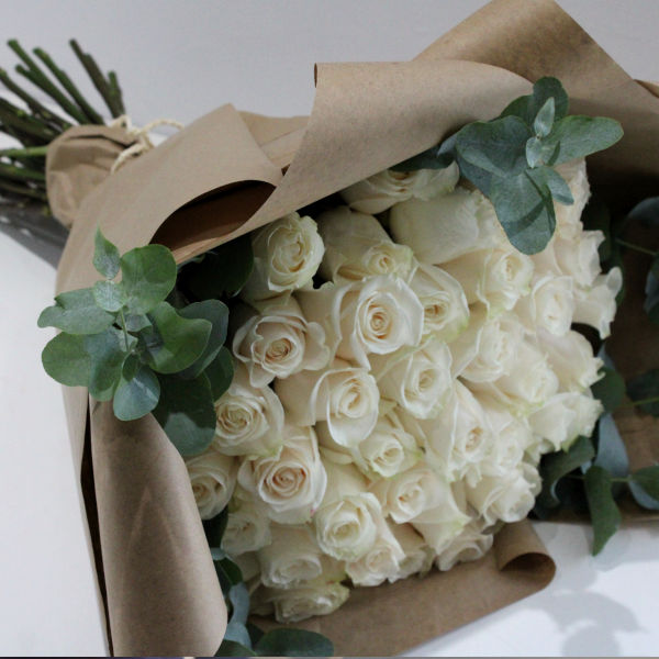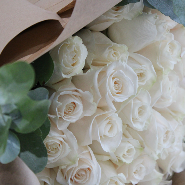 Make a statement with 3 dozen white roses or arrange it yourself .
