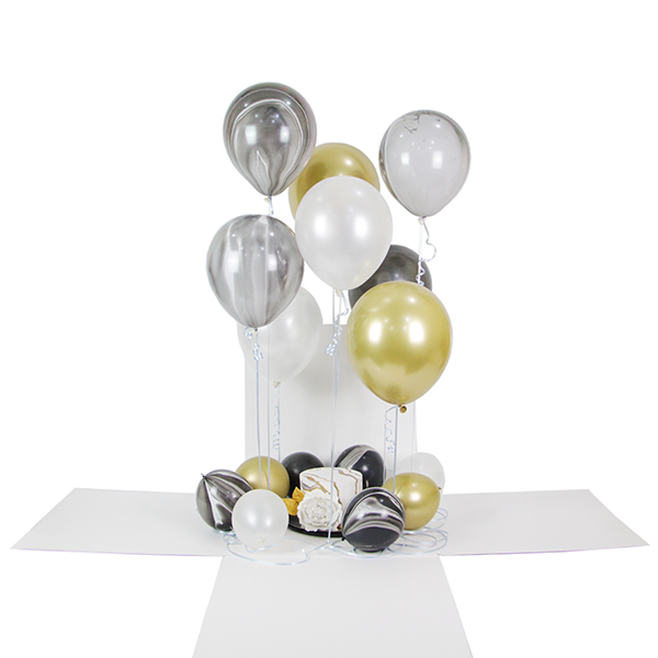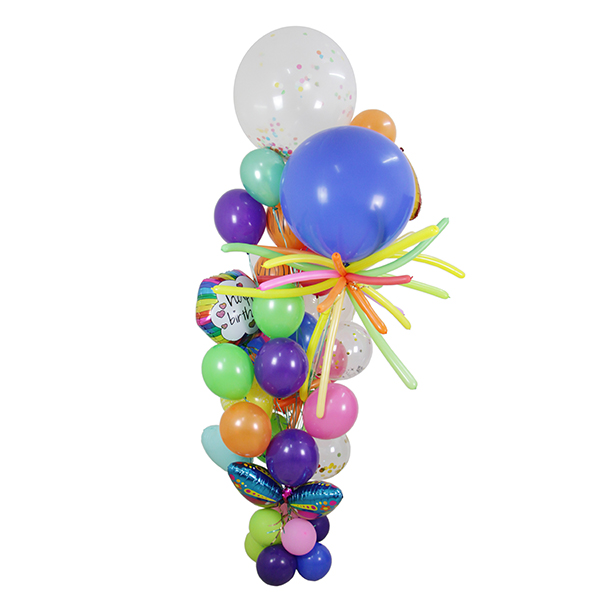 A balloon bouquet arranged with lips foil balloon and mixed sizes and color latex balloon inflated with normal air and helium gas.