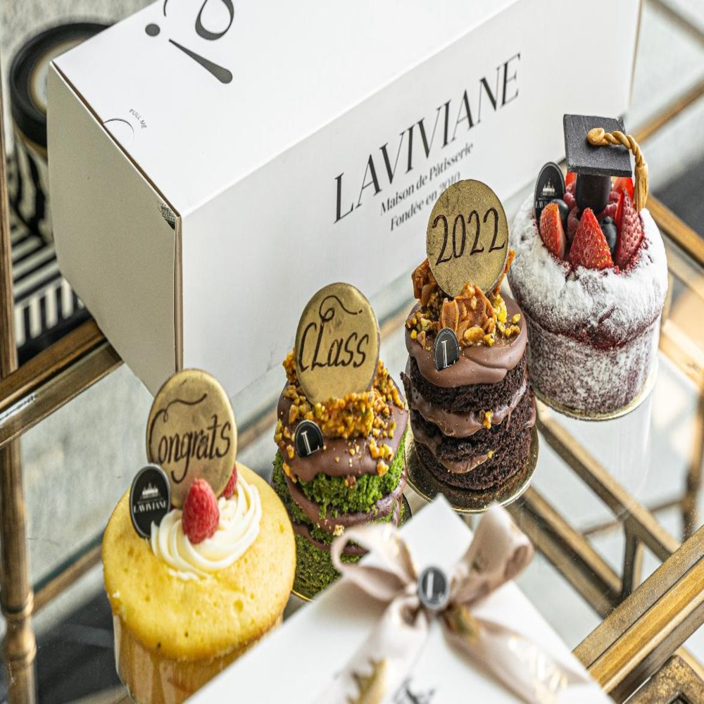 4 pcs small cakes lemon cake, red velvet, nutella cake and nutella pistachio cake.
